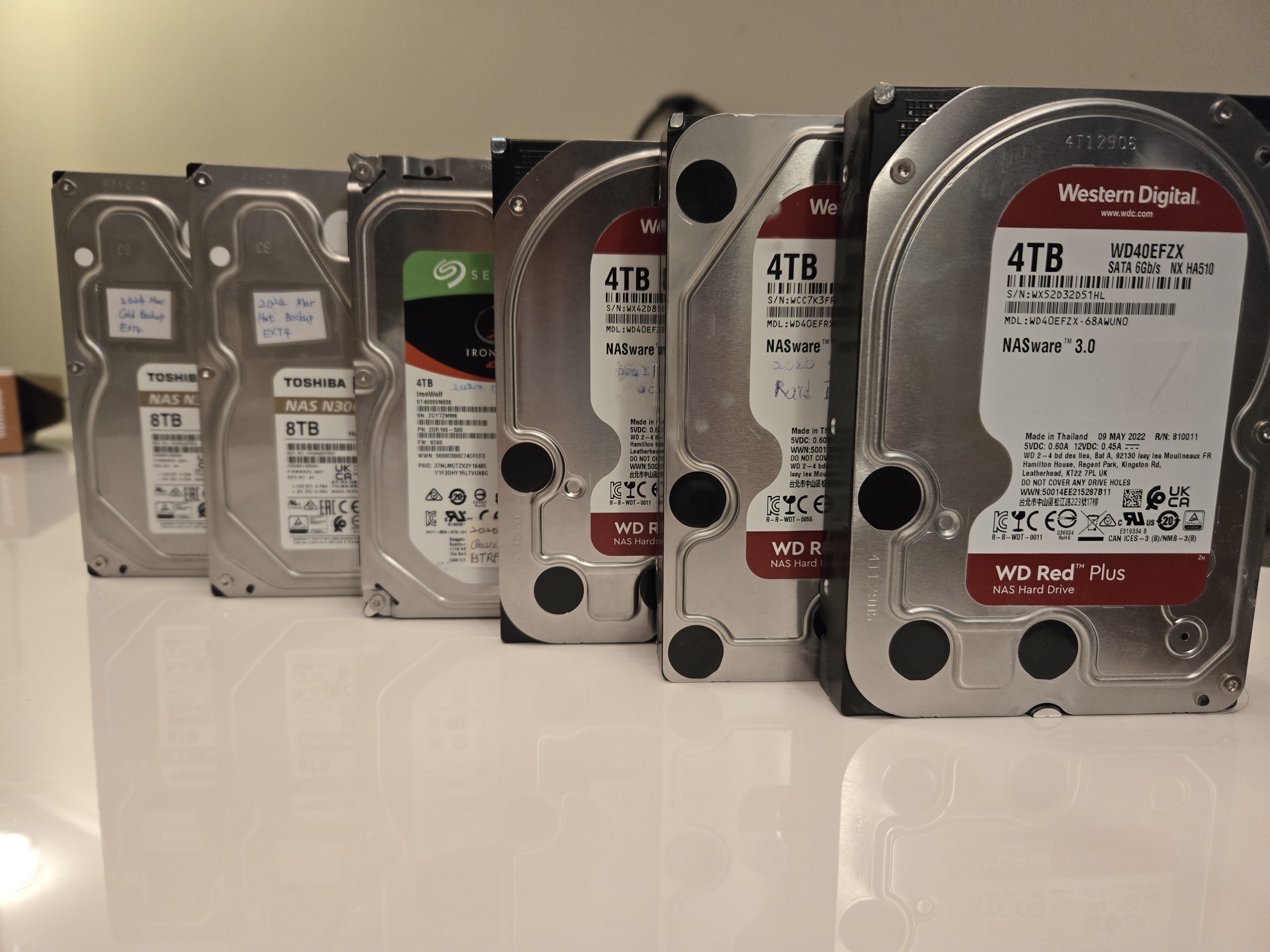 Data drives (WD Red, Seagate Iron Wolf, TOSHIBA N300)